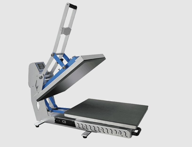 A machine that uses heat and pressure to transfer images onto substrates such as fabric, metal, glass, or leather. The process is often used to create t-shirts, promotional materials, name tags, and other items.