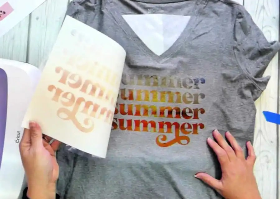 To get your design just right, start by placing the print side down on your shirt. Generally speaking, it should be about two inches below the collar – this is easy to gauge with a v-neck.